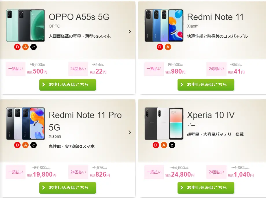 - スマホ本体価格が最安(のものが多い)