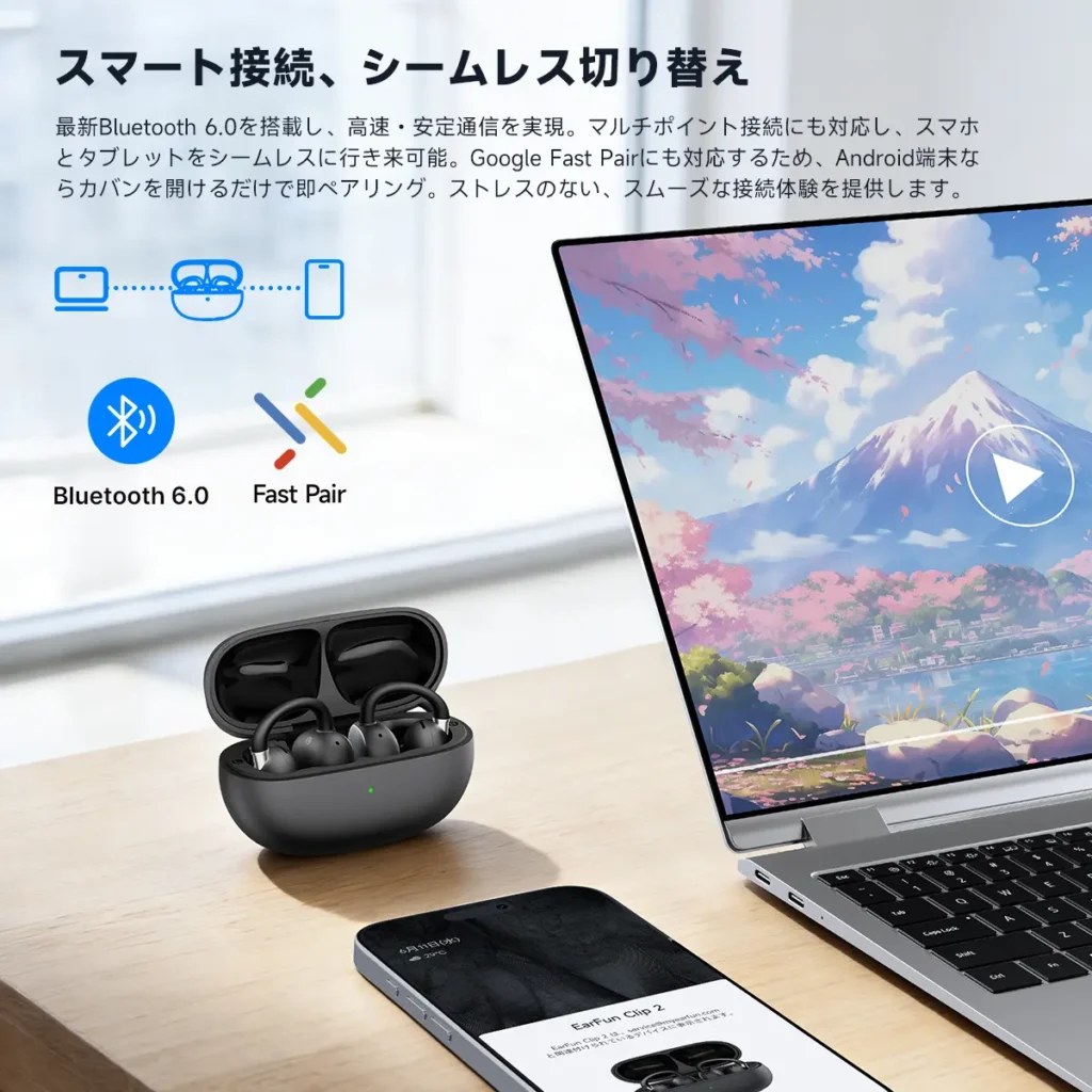 ・EarFun公式サイト:https://www.myearfun.com/jp/headphones/earfun-clip-2-hi-res-open-ear-wireless-earbuds-black?srsltid=AfmBOooe8Z4ZHQnb1TkXqpNuPQfuRhslj8XT93rfw-6MmOksWnSAXc2J