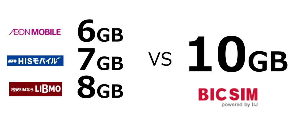 [st-kaiwa1]他のどの事業者の6GB~8GBプランよりもBIC SIMの10GBプランの方が安い